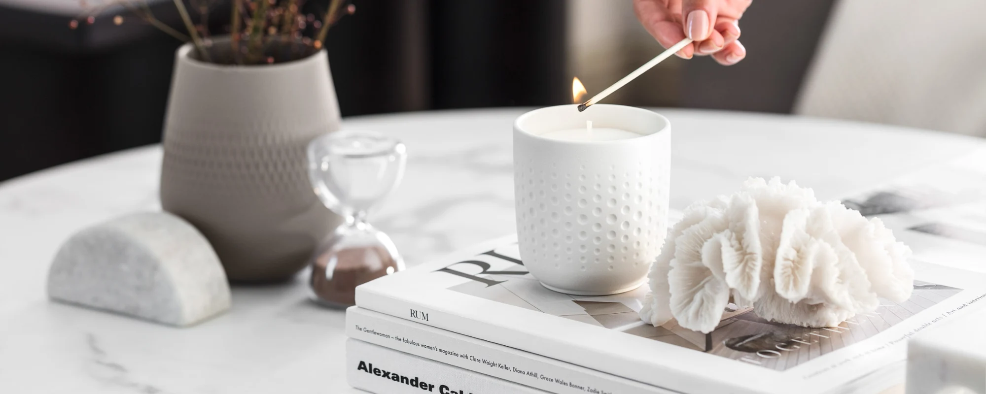 Experience the perfect harmony of elegance and fragrance with our premium scented candles. These exclusive accessories transform your home into an oasis of relaxation and style. With a wide range of exquisite aromas, our scented candles fill every room with an atmosphere of luxury and well-being. Let yourself be inspired by the harmonious fusion of design and scent that pampers your senses and turns your home into a stylish retreat.
